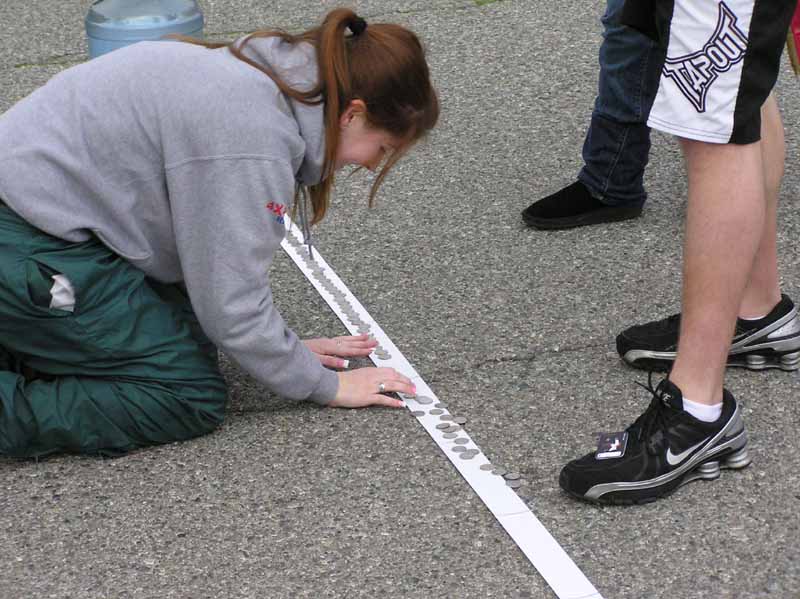 . / 140-Trying to set the Guinness record for laying down a mile of quarters - This was a dry run