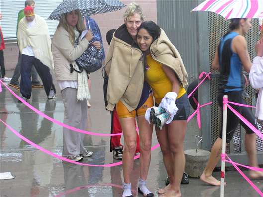 Coach Cherie guides her to the finish. The clock doesn't stop until you hand in your number.