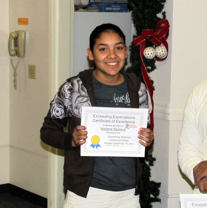 EE-Awards-2010 -- Marlene received a scholarship from John and Lizzie Brenkus but we reported on that a few weeks ago, so here she is with her well-deserved certificate for "overcoming obstacles."