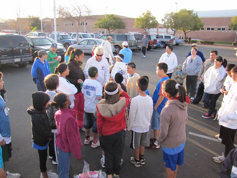 Redlands -- A special briefing from the coach for the first-time triathletes. (This race had a record turnout of parents.)