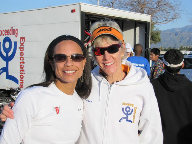 Redlands -- A major thrill for all of us: Joanna Hayes, 2004 Olympic gold medalist in the 100m hurdles, came to run with the EE kids. (Joanna is the one on the left.)