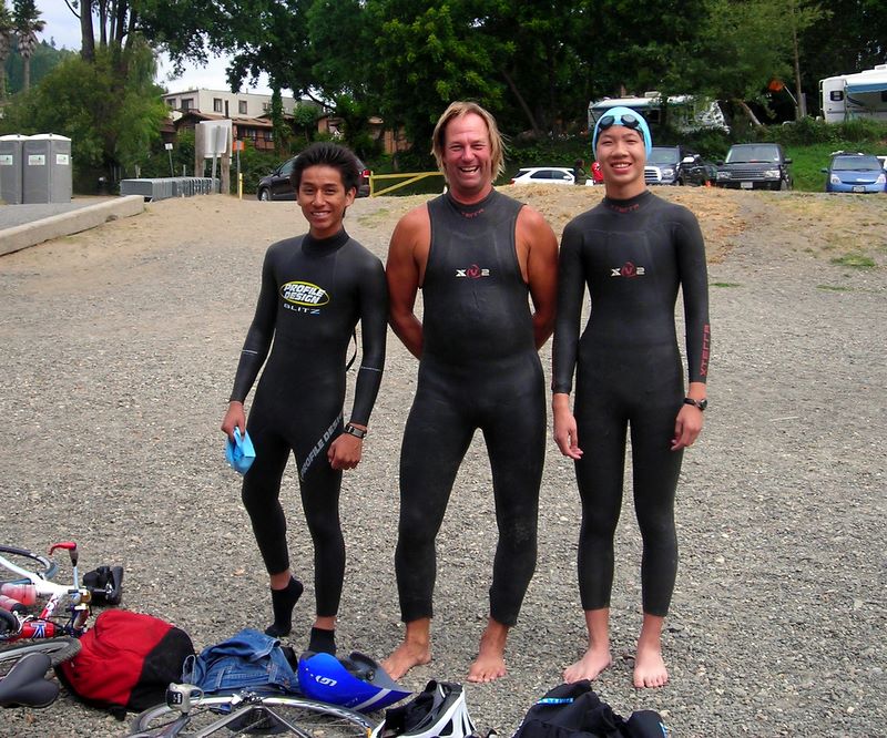 Vineman-2011 -- Warmup swim the day before the race. Craig tries to keep it light.