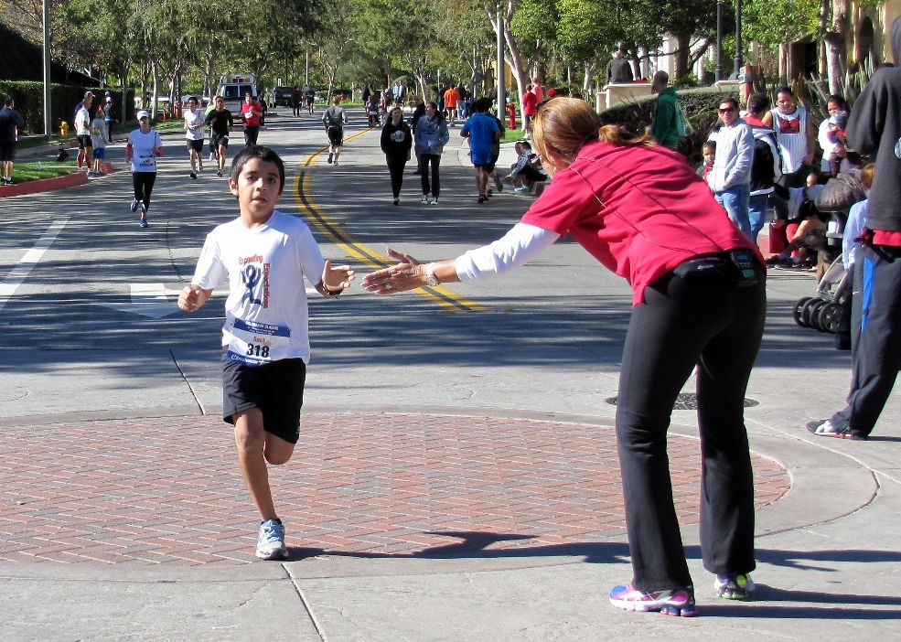 Calabasas-2012 -- Saul high-fiving Julie Talbert of the Talbert Family Foundation