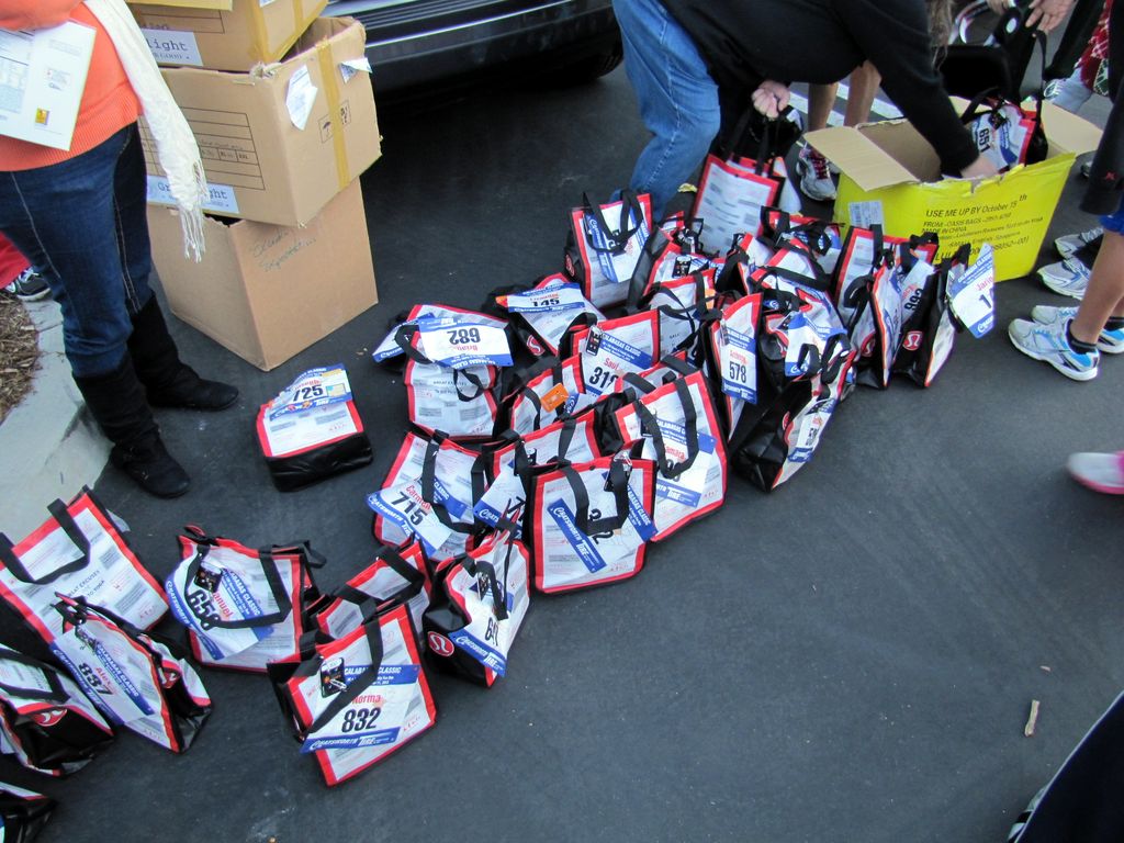 Calabasas-2012 -- The Talbert Family Foundation always good care of the kids, this time by giving us all the race numbers and goodies bags at once.