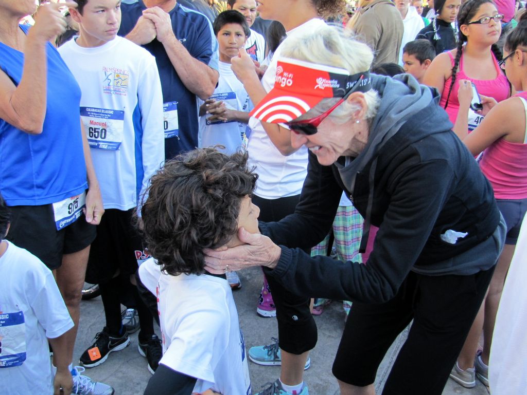 Calabasas-2012 -- The Coach gives a little last minute encouragement to future Olympian Ariane.