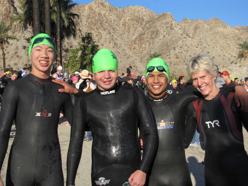 Desert-Tri-2012 -- Archi, Anthony, Josh and Coach. (Anthony wasn't in a bar fight; he fell off his bike the day before.)