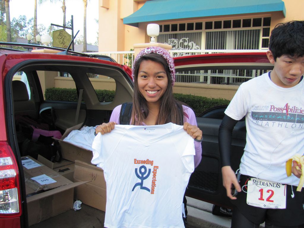 Redlands-2012 -- The new EE t-shirts are beautiful, but Isi is also wearing a Harvard hat. Not a random bit of clothing: This girl has ambitions.