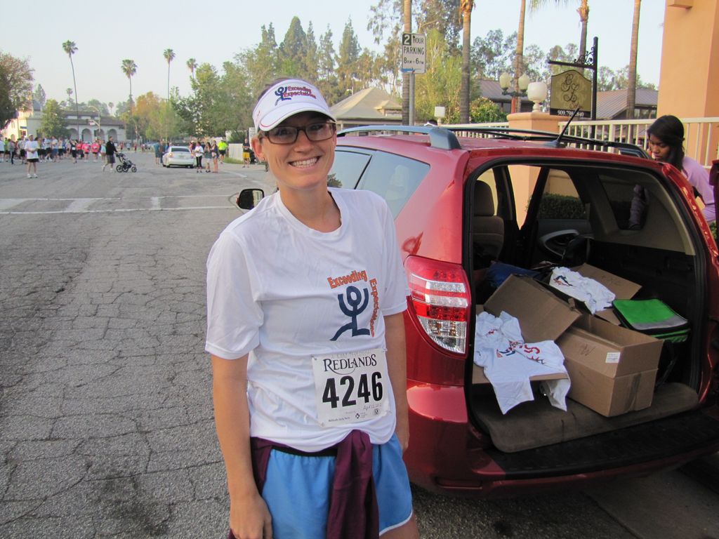 Redlands-2012 -- EE volunteer and race participant Ryan, manning the supply vehicle She did a 50-mile foot race last month.