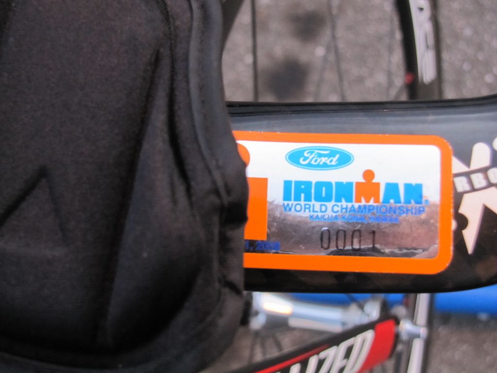 Steelman-2012 -- "Is that a 2008 Ironman World Championship bike regsitration sticker with the number '0001' on it?"