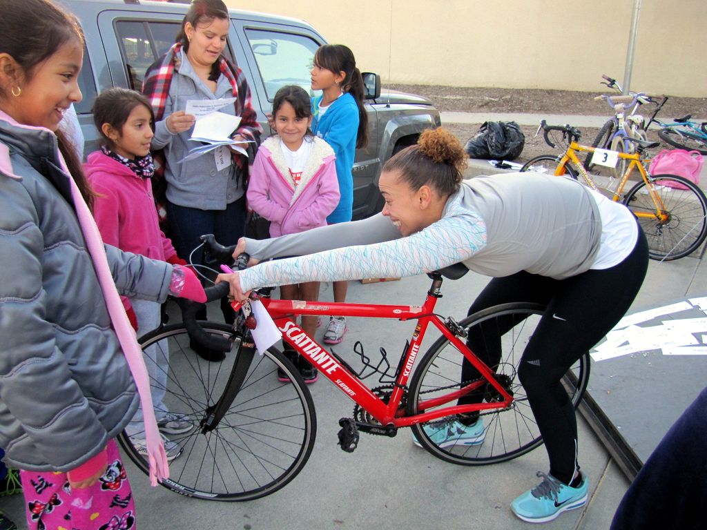 Tinsel-Tri -- Caitlin demonstrating how not to ride a bike.