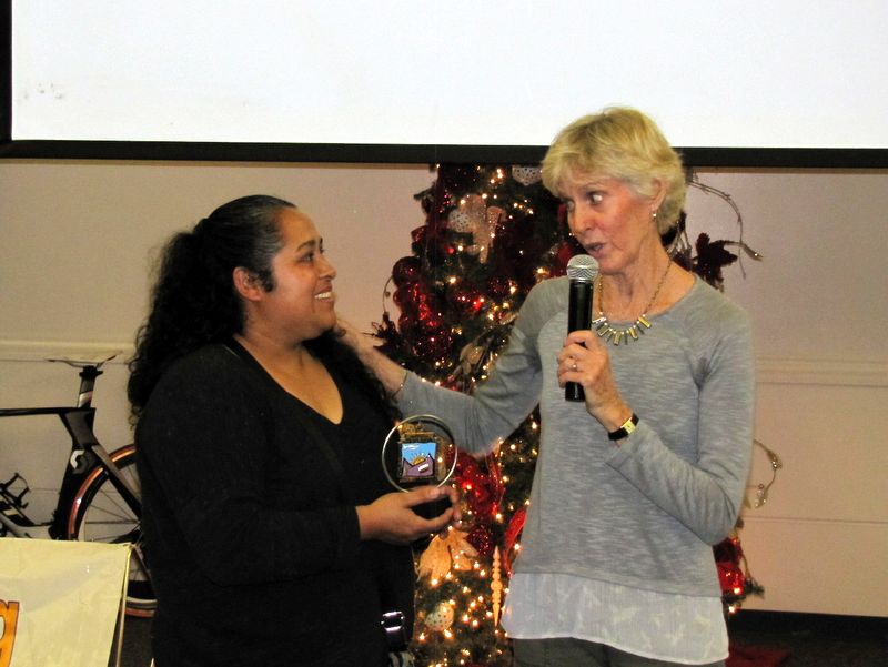 Awards-2013 -- Enrique and Anna's mom Teresa gets a special "Senior's" award for outstanding performances at the Tram Run and Santa PAWS