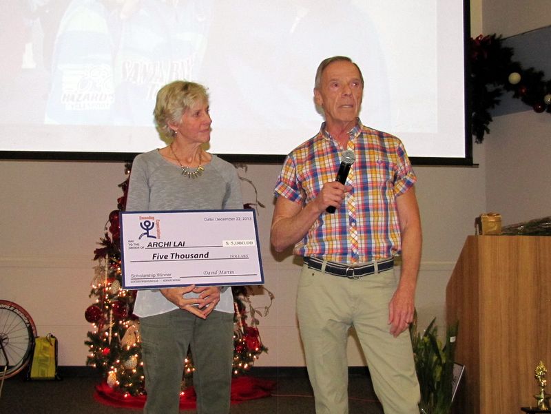 Awards-2013 -- David Martin talked about "never settling for average" and backed it up with a grant to support Archi's first year in college, wherever that turns out to be.