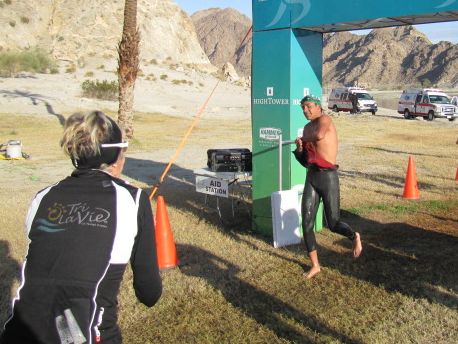 December-2013 -- Jesus heads for T1 as Coach Cherie looks on.