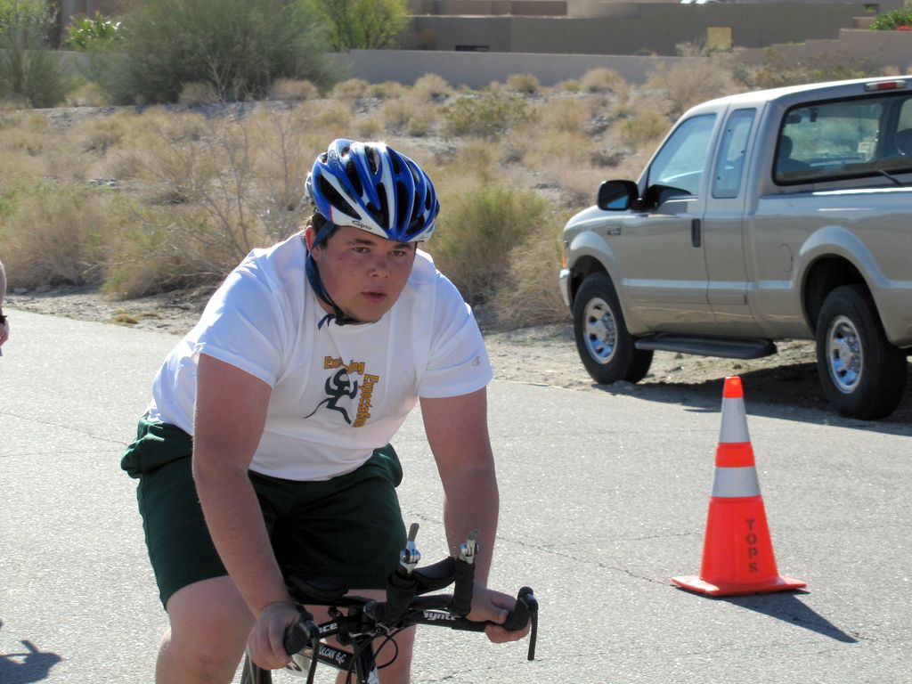 Desert-Tris-2013 -- Joseph has his game face on as he finishes up the bike leg.