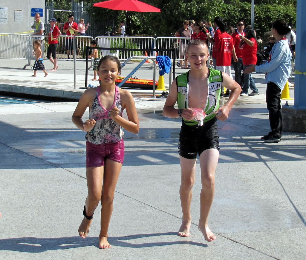 PossAbilities-2013 -- Gary helps sister Monique to the finish chute.