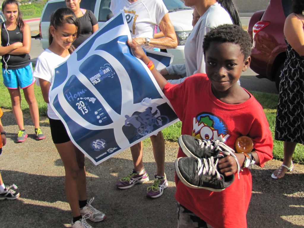 Training-06-09-2013 -- Antonio gets a poster from last week's Ironman 70.3 Hawai'i