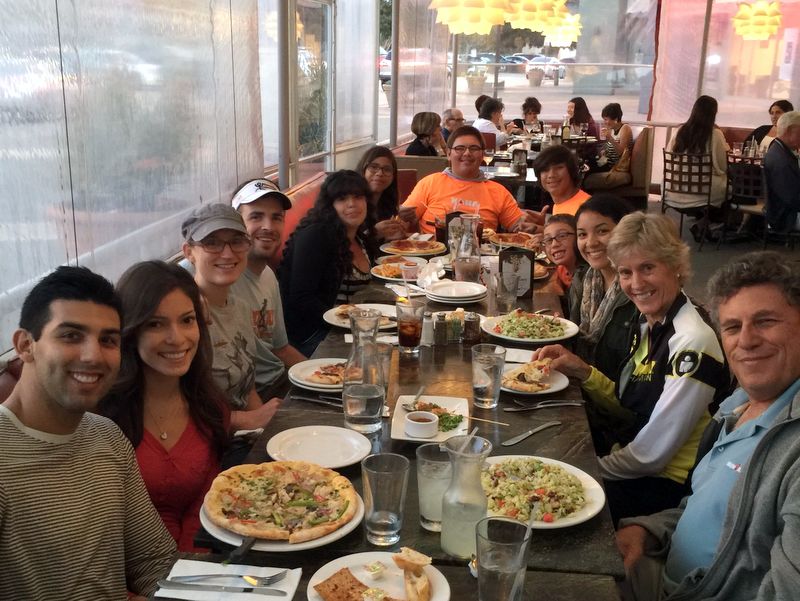 CAF-2014 -- Pre-race-day dinner, with our old teammates Nik and Marlene, and the tab picked up by two great Tri La Vie ladies, Xena Ellis and Nini Cortina.