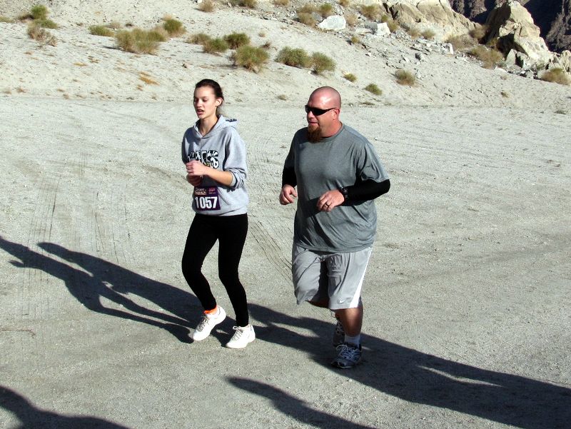 Desert-Tri-2014 -- Sierra and dad Gary pacing each other