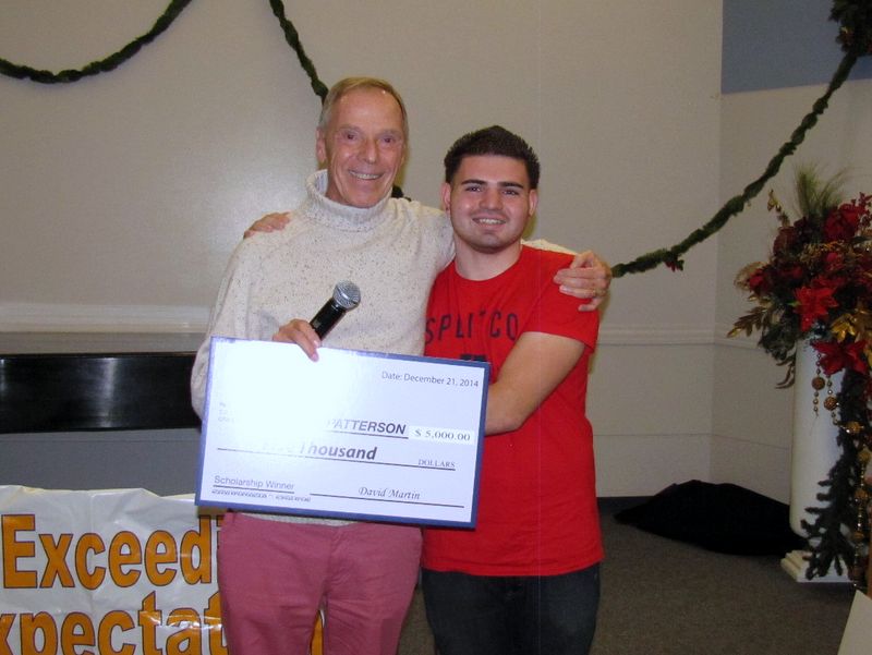 EE-Awards-2014 -- EE benefactor David Martin presents a $5,000 scholarship to Cal State East Bay freshman Anthony Patterson