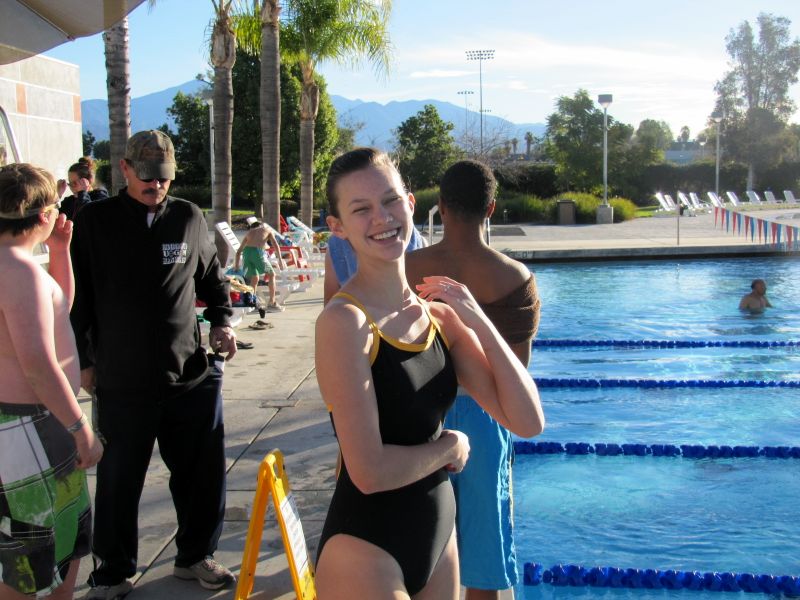 Swimathon-Runathon-2014 -- Sierra getting ready to hit the water. (She's a freshman at Valley College.)