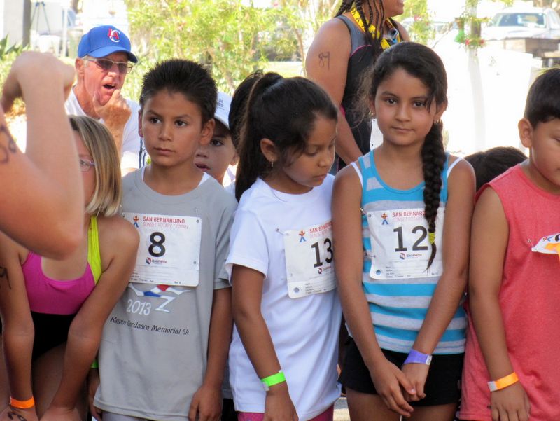 Tinman-2014 -- The Alvarez's line up for the kids tri. All of the kids in this race did the 5K first!