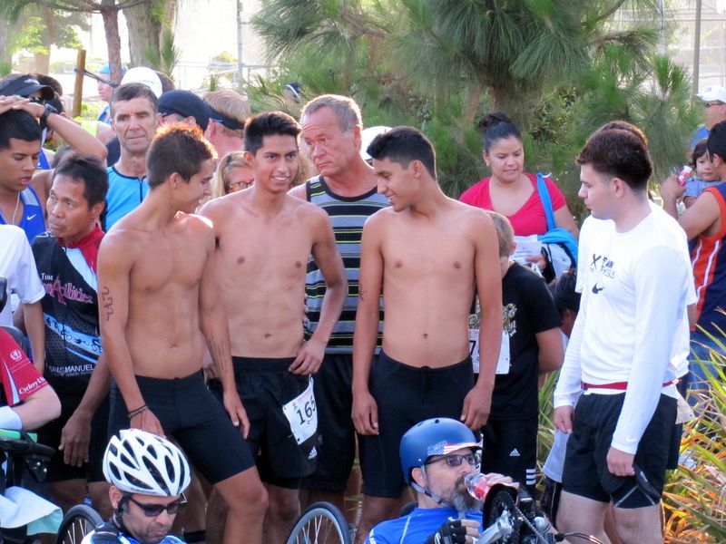 Tinman-2014 -- "Nice abs." "Nice pecs." Oh, to be young again. Gage, Javier, Jesus... and Anthony saying, "Next time follow the rules and wear shirts!"
