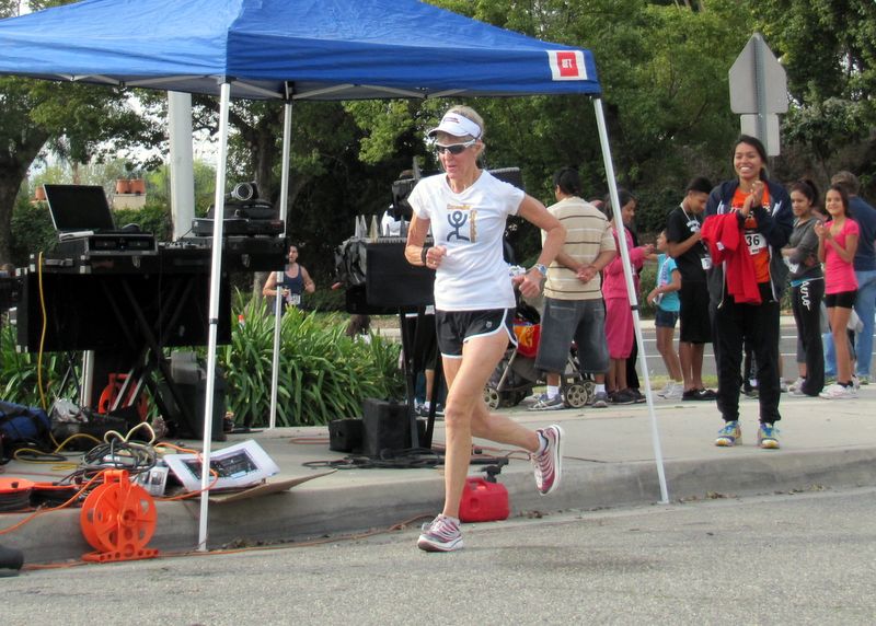 YMCA-2014 -- The coach brings in a first-place finish. (She beat nearly all the 50-year olds, too.)