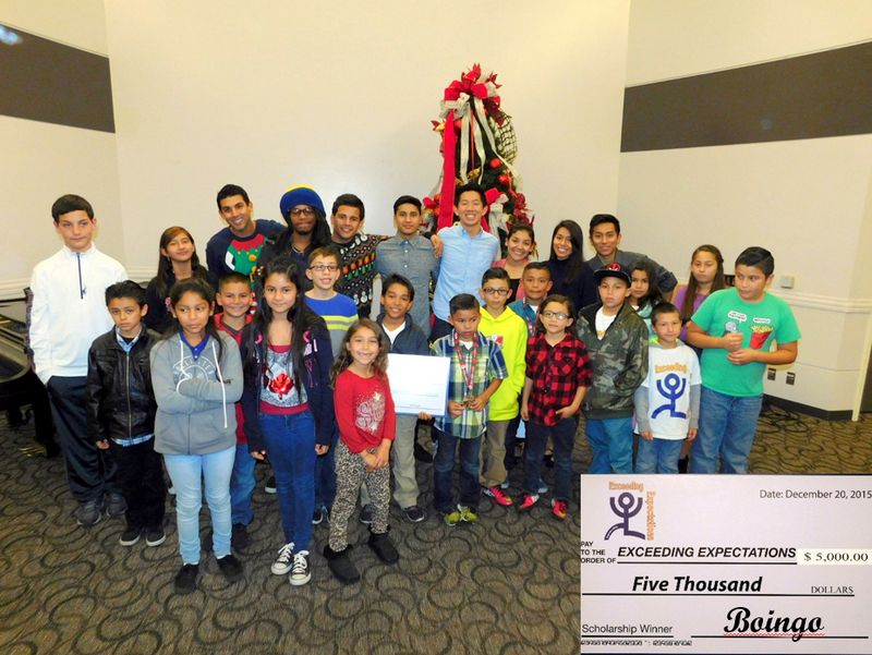 Awards-2015 -- The college kids preside over the next generation accepting a great donation from our long-time friends and sponsors at Boingo