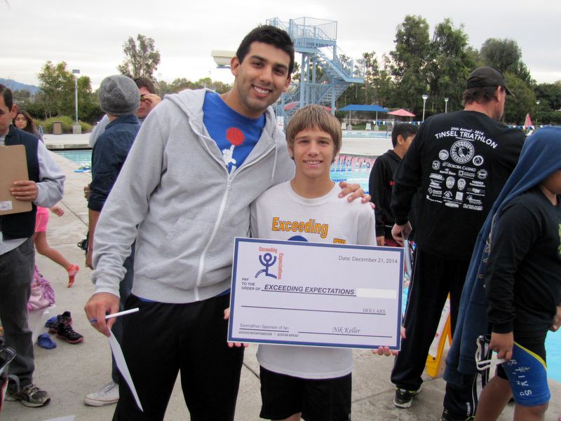 Swimathon-2015 -- Former EE kid Nik Keller giving back. He handed a blank check to Ian, and told him that his company was going to match his donation based on how many laps Ian swims.